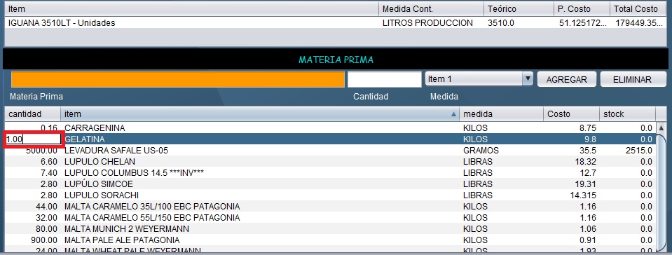 - En la siguiente pantalla, coloque la cantidad y el producción que se va a filtrar, y luego clic en AGREGAR