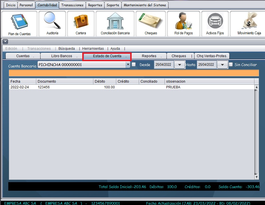 Ingreso a conciliación bancaria