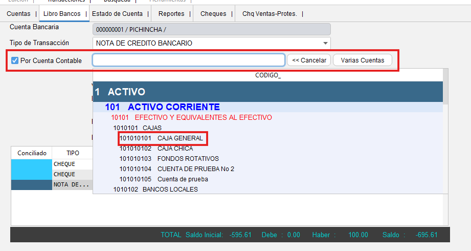 - Selecciona la opción "Conciliación Bancaria"