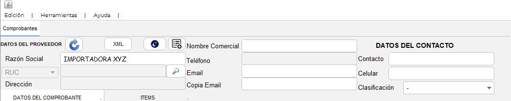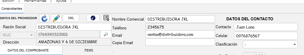 - Luego ingresa toda la información requerida del proveedor en los campos indicados