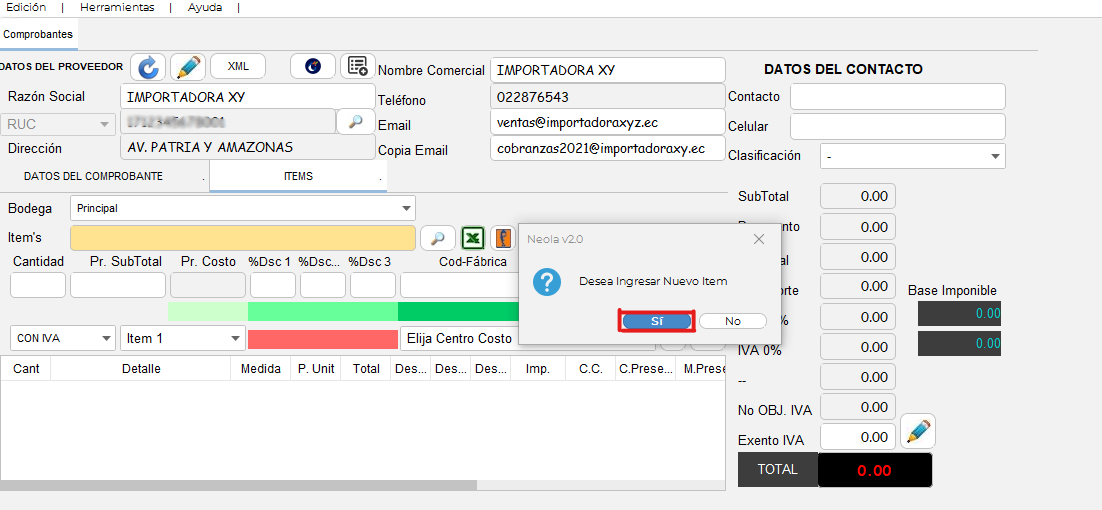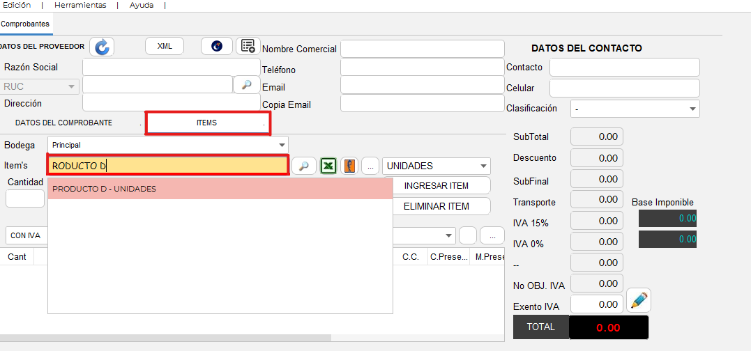 , y los datos del proveedor se cargarán automaticamente.