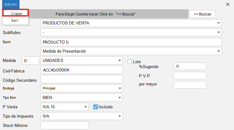 Una vez ingresados los datos correspondientes, de clic en "Edición" y seleccione la opción "Grabar"
