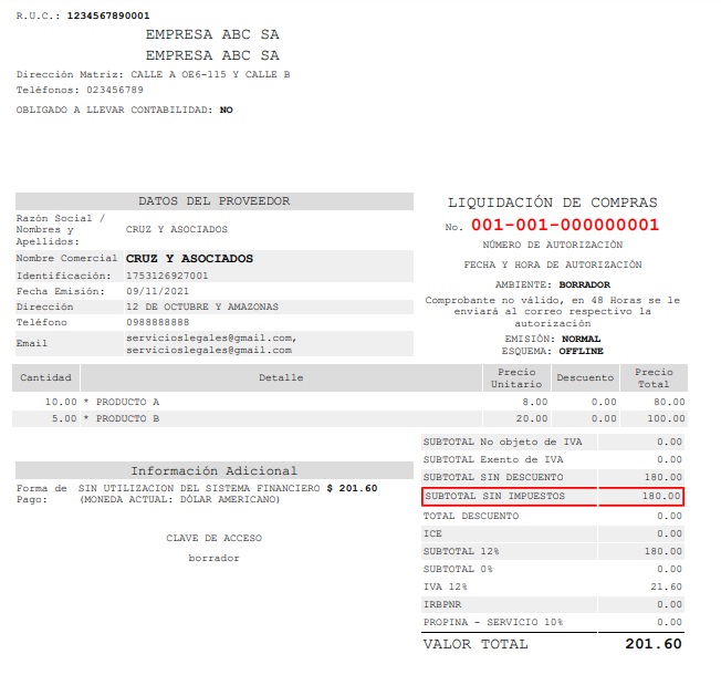 - Tipo de Pago/SRI: Efectivo (sin utilización del sistema financiero) cheque y transferencia (otros con utilización del sistema financiero)