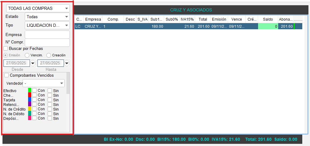 - En el módulo de Cartera, busca la liquidación de compra que se autorizará