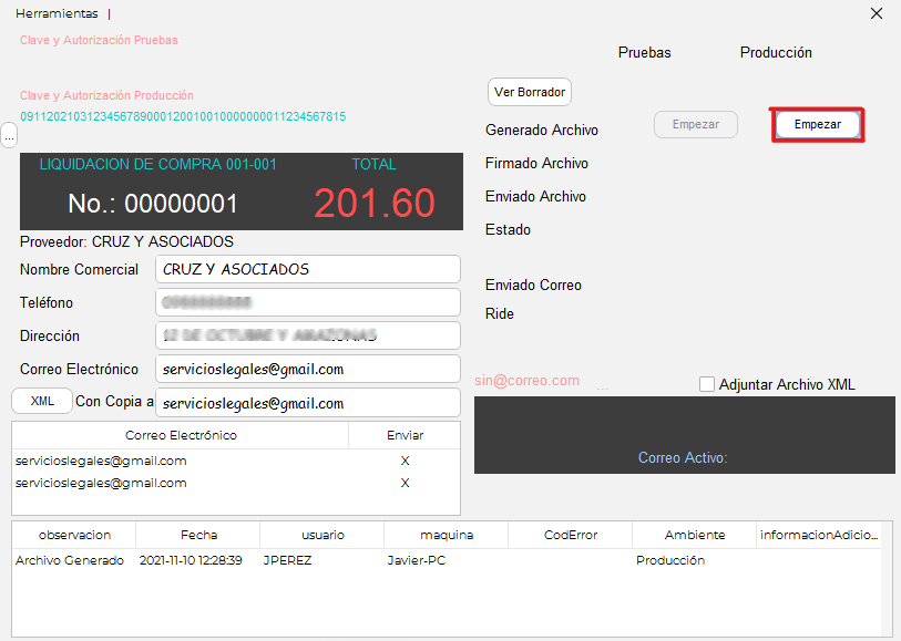 - En la pestaña Datos del proveedor, ingresa la cédula o RUC en el campo "Razón Social", a continuación las coincidencias se mostrarán en pantalla.