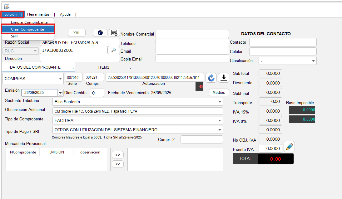 - Finalmente, en la pestaña "Edición", selecciona "Crear Comprobante"