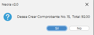 A continuación, se mostrará una ventana de con un mensaje de confirmación, verifique los datos y presione el botón "SI".