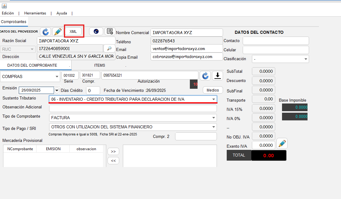 🧾 Ingreso de compras con archivo XML