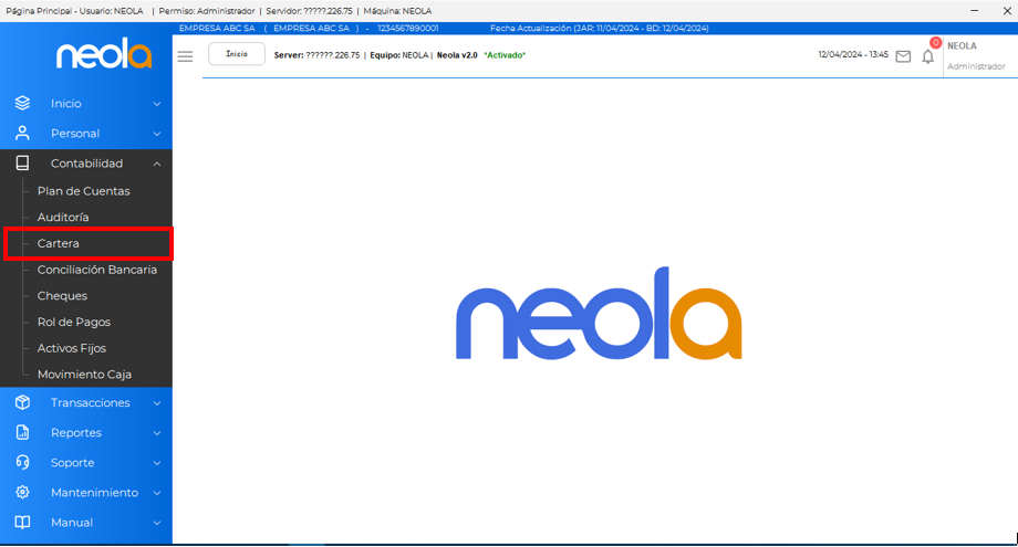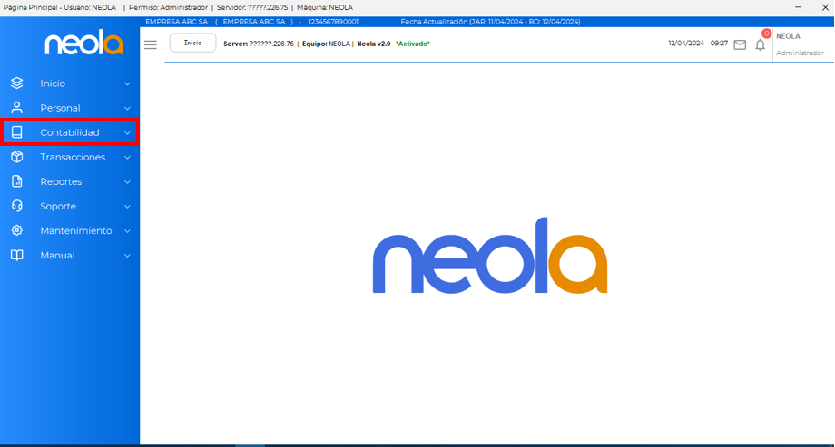 - Una vez en el menú principal, selecciona-> "Contabilidad"