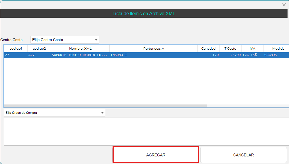 Agregar la compra