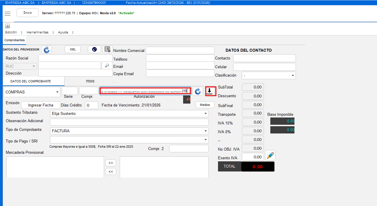 📘Registro de compras con el número de autorización