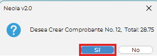 El sistema mostrará un mensaje de confirmación: “¿Desea crear comprobante?”