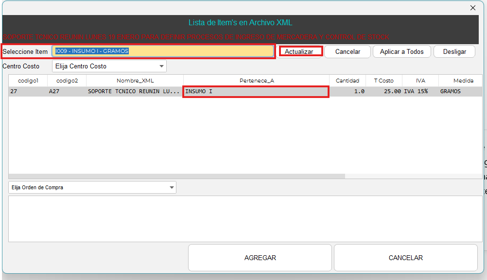 Selecciona el ítem correcto al que pertenece la compra