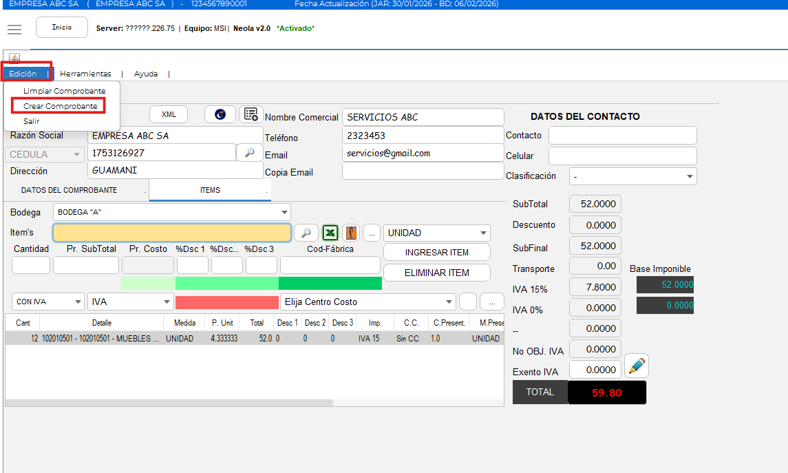 🧾 Debes revisar cuidadosamente la lista de ítems que el sistema carga automáticamente.