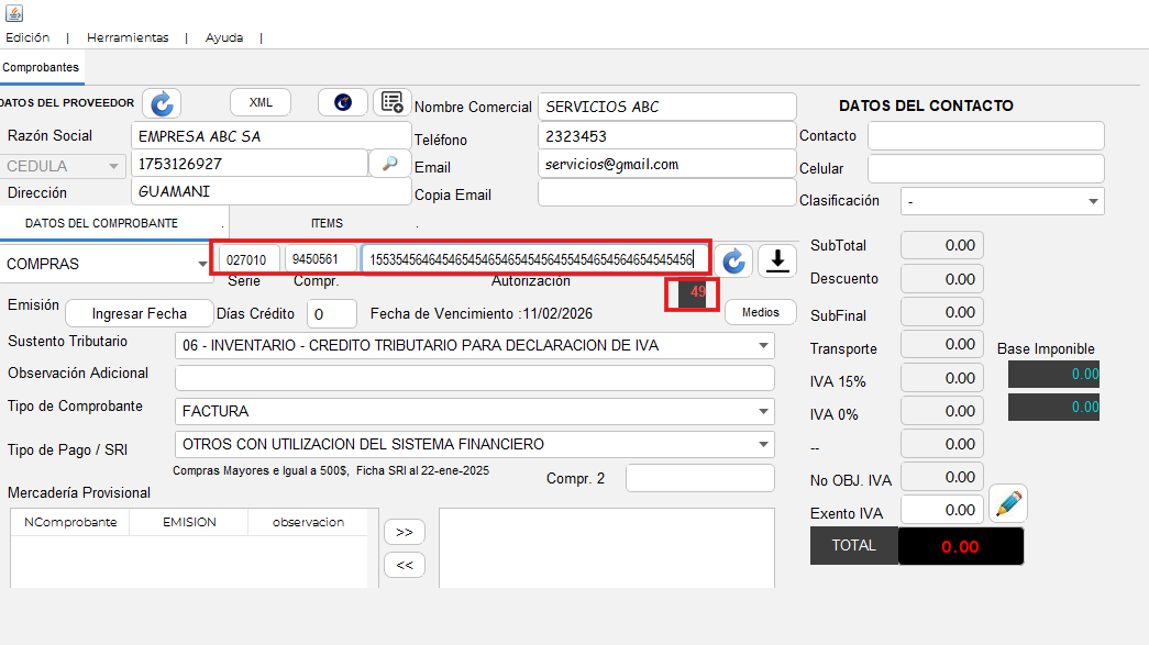 🔐 Número de autorización (49 dígitos)→ Ingresarlo exactamente como aparece en la factura.