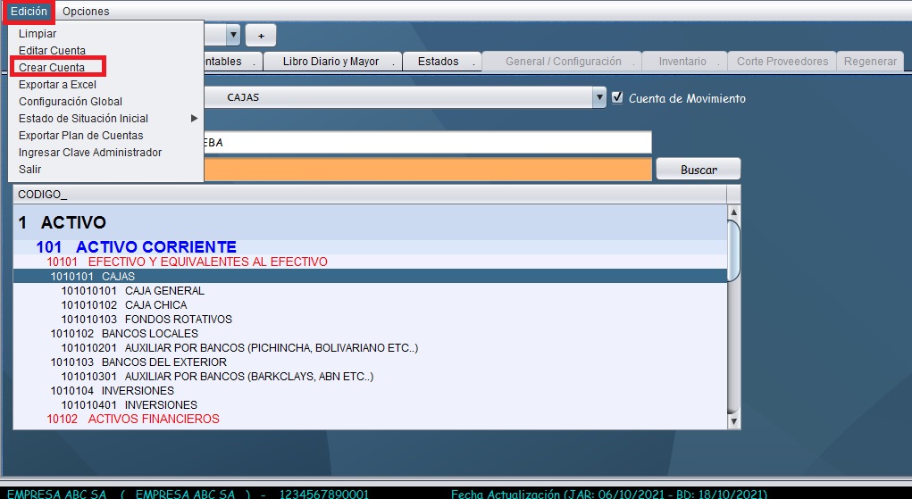 ✨NOTA: En caso de crear una Cuenta Mayor, se debe desactivar la opción Cuenta de Movimiento.