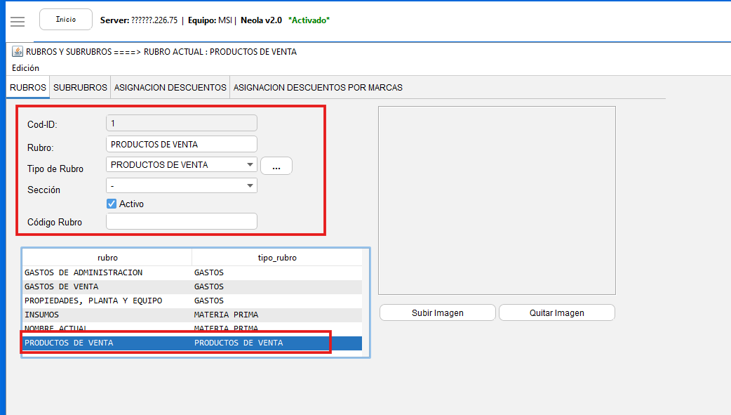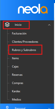 -En la pestaña Inicio, seleccione la opción "Rubros y SubRubros"