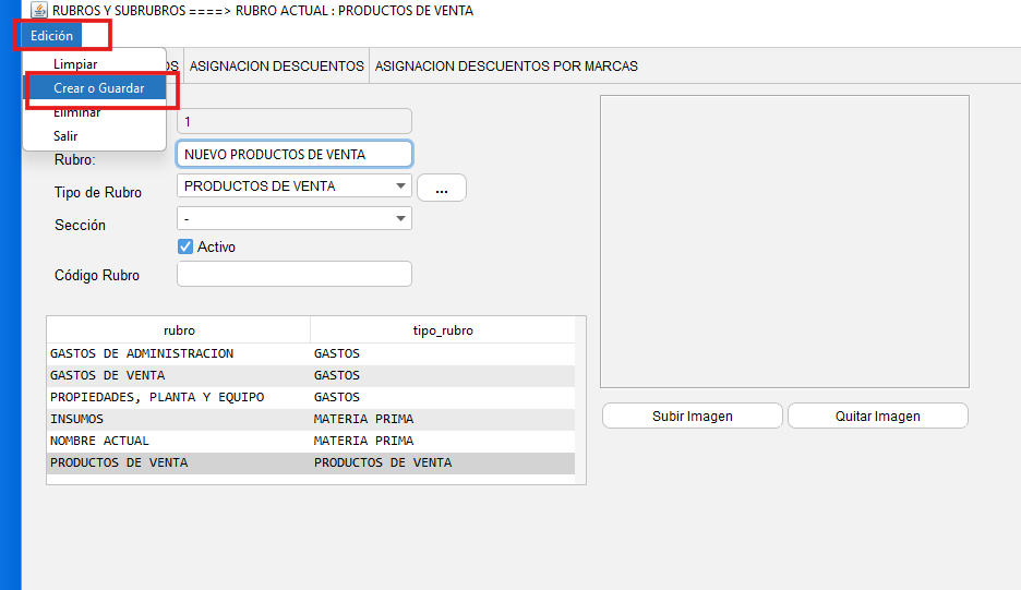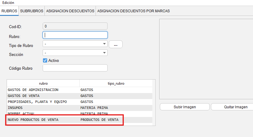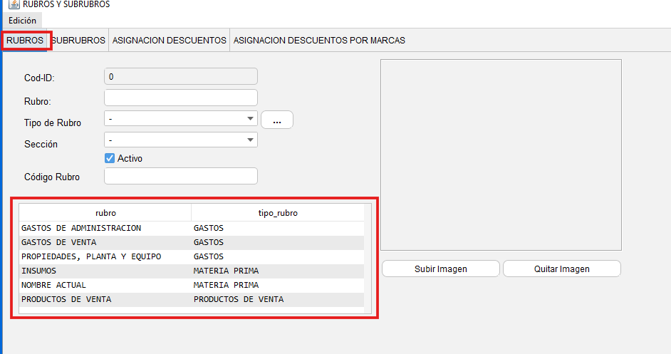 -En la parte inferior se mostrará una lista de los rubros que se encuentran ya creados en nuestro sistema.