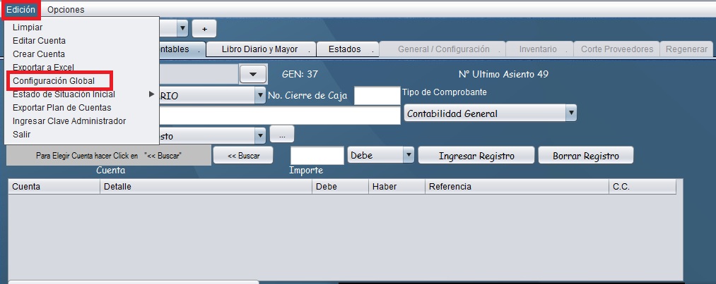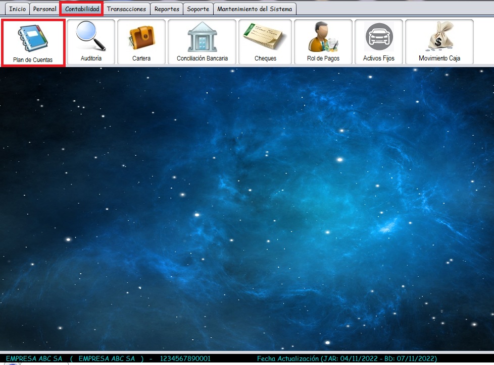 - Diríjase a la pestaña de Contabilidad, y luego seleccione Plan de Cuentas