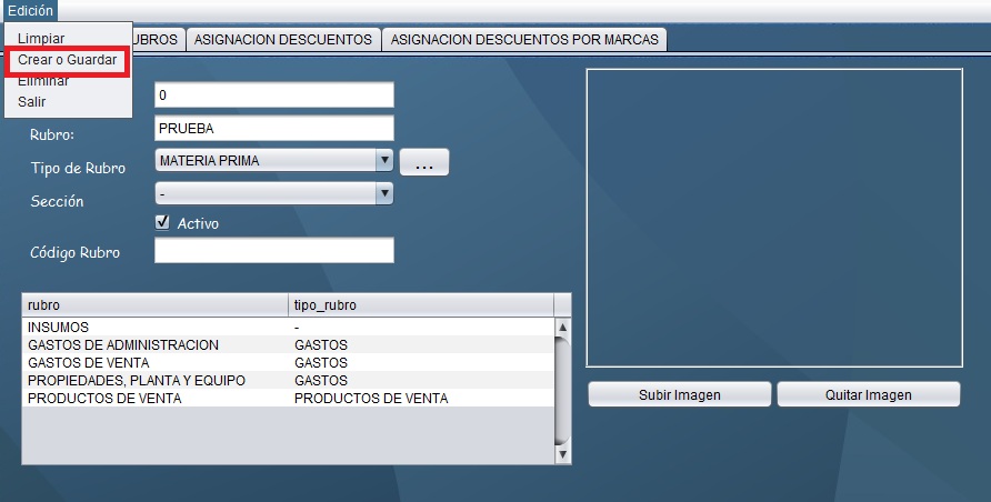 - Coloque el nombre del subrubro que va a crear, y la cuenta contable