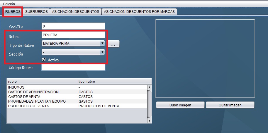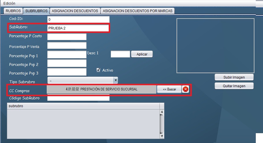 - Elija con doble clic el rubro donde va a crear el subrubro y diríjase a la pestaña de subrurbros