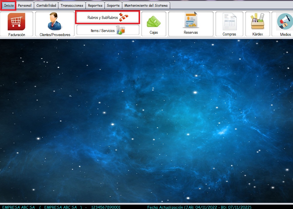 - En la pantalla de Inicio, diríjase a la opción de "Rubros y Subrubros"