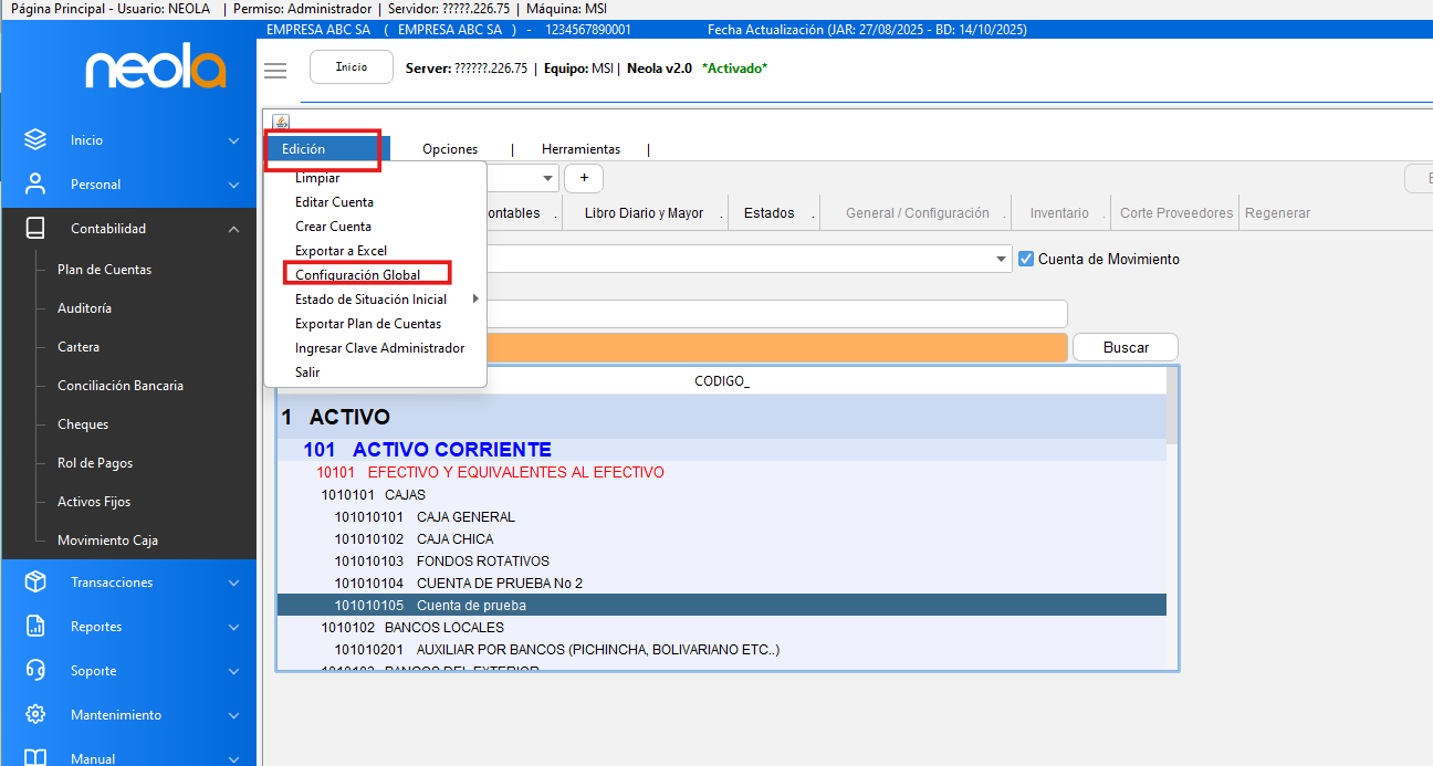 - Selecciona despu茅s la opci贸n "Plan de cuentas"