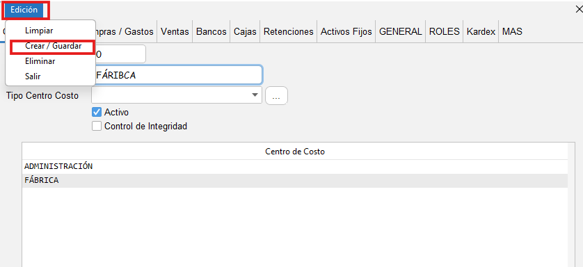 馃Ь Crear Centros de Costo