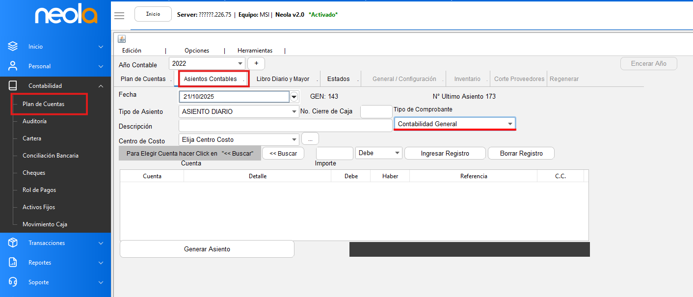 Anular Asientos desde Plan de Cuentas