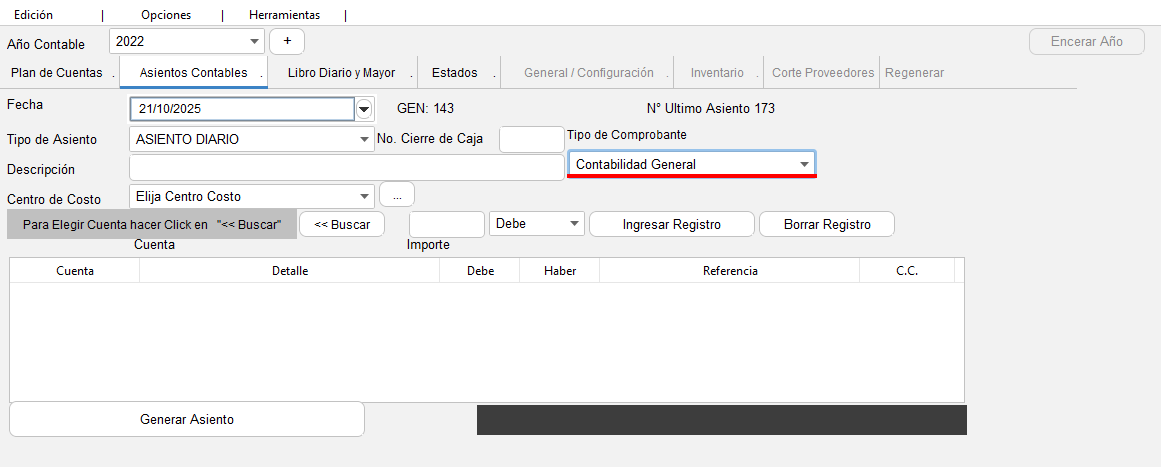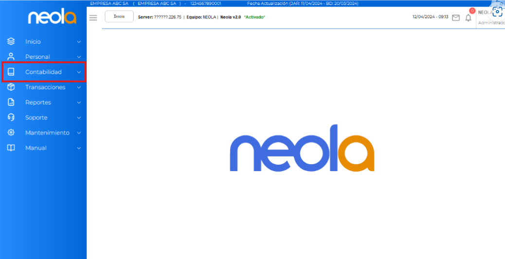 - El usuario deberá dirigirse al menú principal y seleccionar -> "Contabilidad"