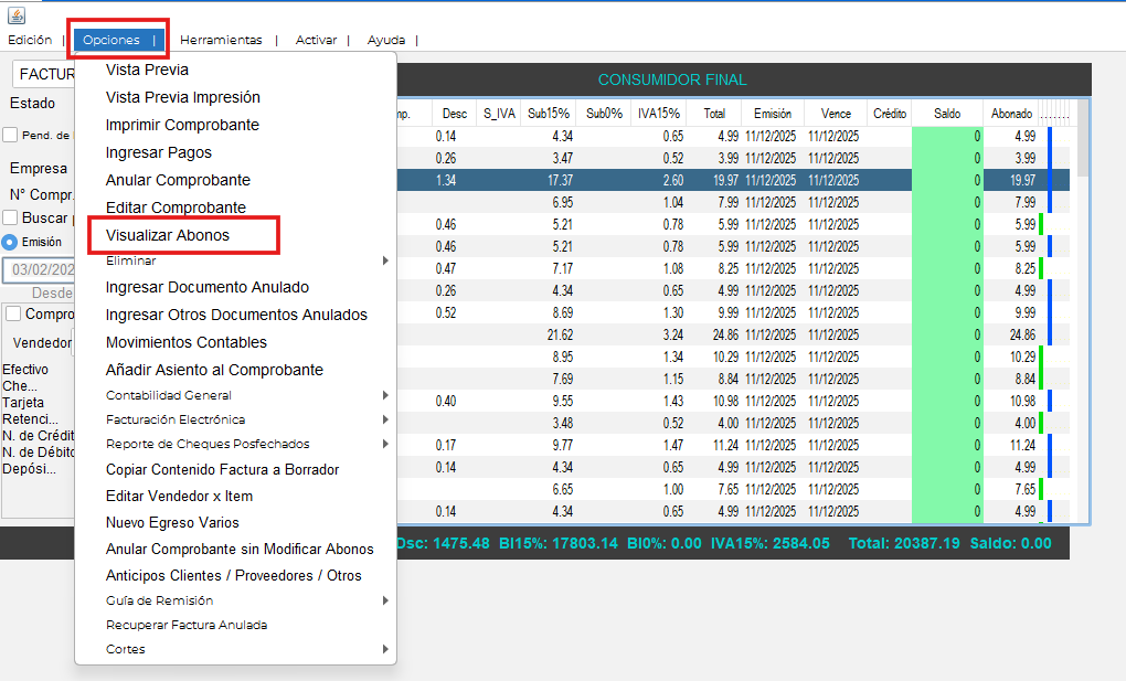 - El usuario deberá dirigirse al menú principal seleccionando la opción "Contabilidad"