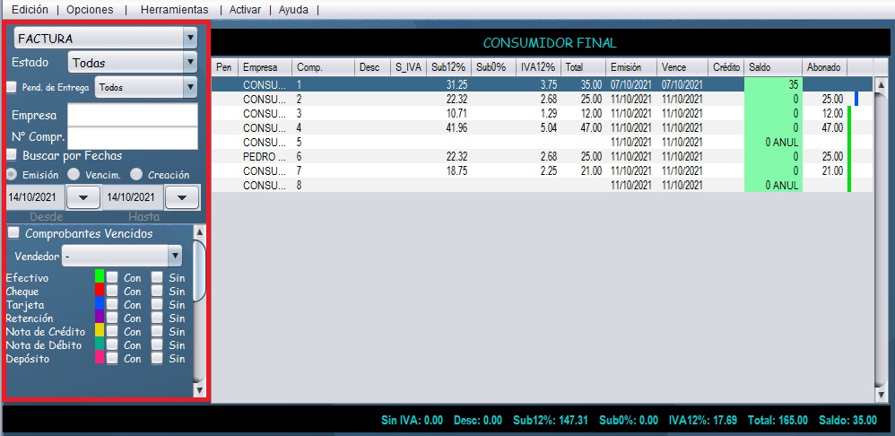 - Con la ayuda de los filtros busque la factura de la cual se va a emitir la nota de crédito.
