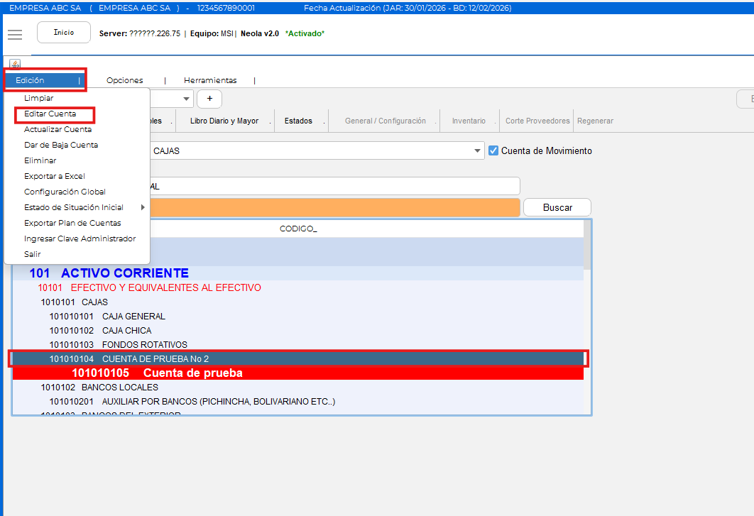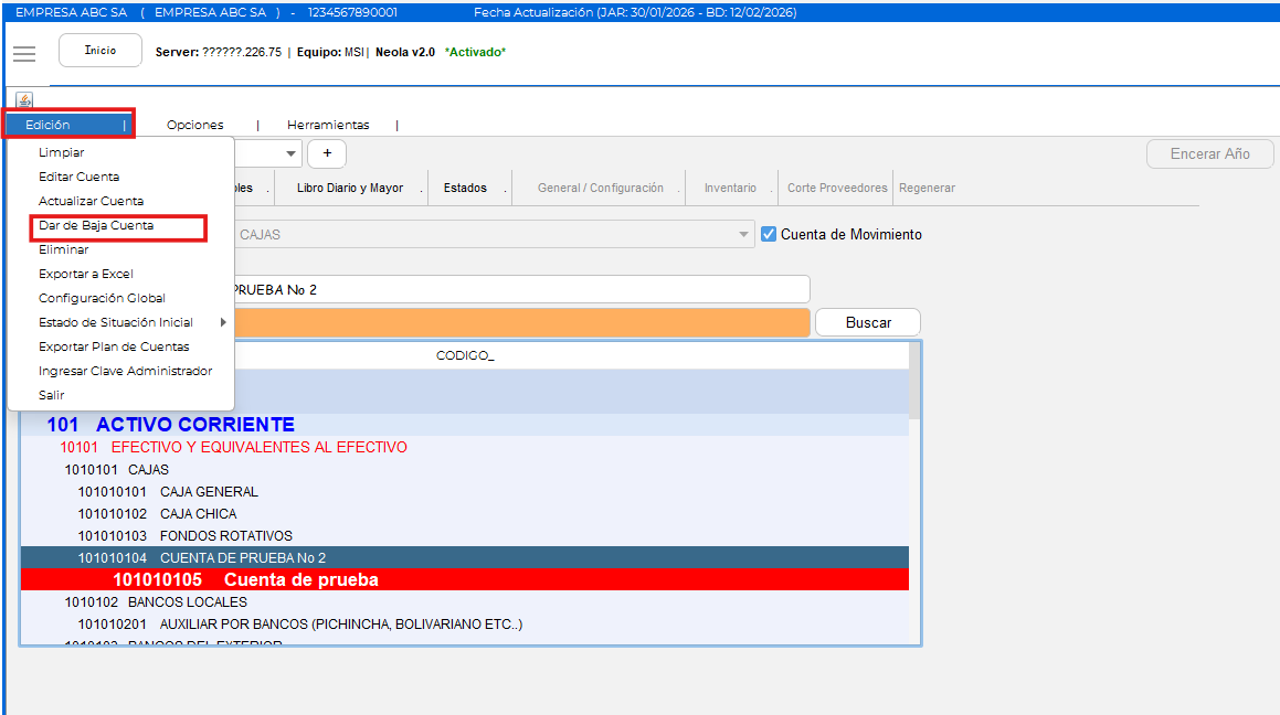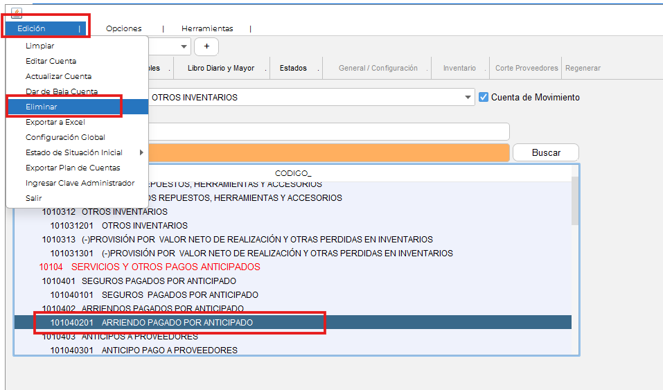 Inactivar o Eliminar una Cuenta en el Plan de Cuentas