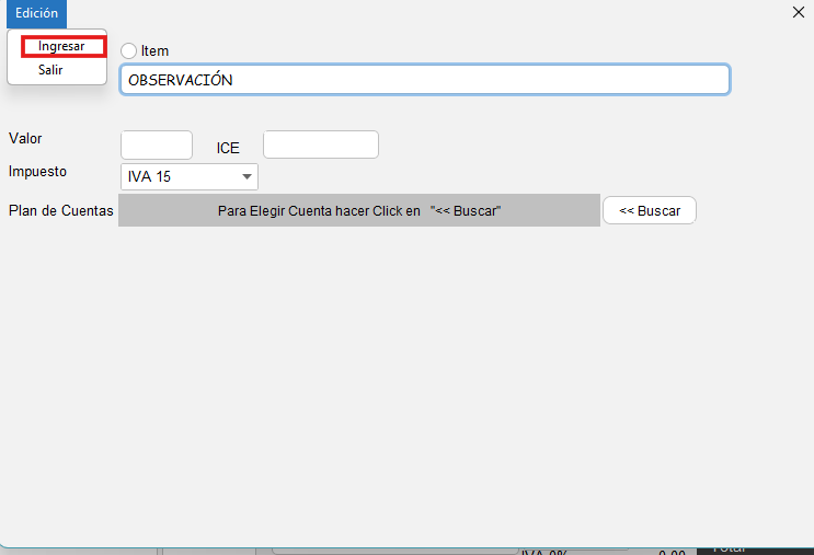 - Posteriomente, presione el botón "Agregar detalle", en esta pantalla usted puede ingresar una observacion (detalle) o un item, coloque la información necesaria y presione "Edición" e "Ingresar".