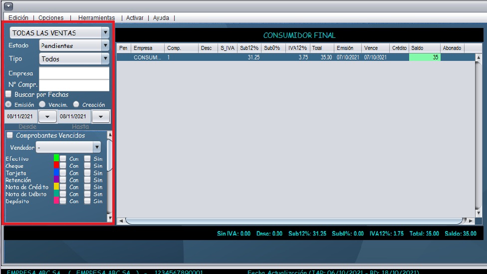 - Con ayuda de los filtros en la parte izquierda, ubique la venta de la cual se va a registrar la retención.