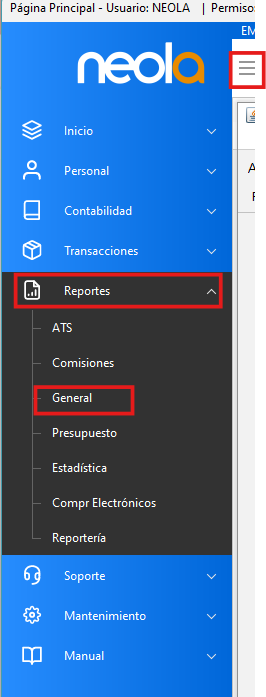 - Seleccione la pesta帽a reportes y luego la opci贸n "General"