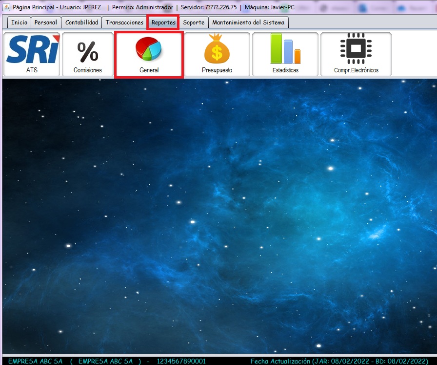 - Seleccione la pestaña reportes y luego la opción "General"
