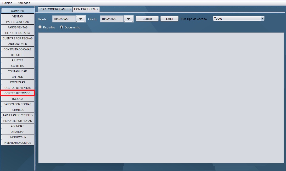 - En la pantalla, seleccione la pestaña "Cortes Histórico"