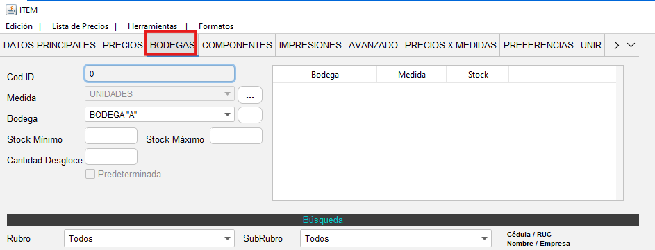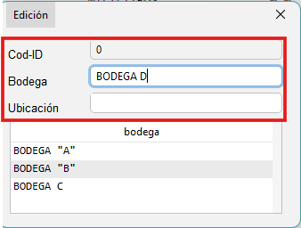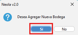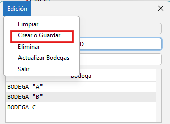 - Se abrirá la siguiente pantalla donde debes colocar el nombre de la Bodega que deseas crear