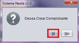 - Se mostrará una ventana con el mensaje "Desea crear comprobante", presione el botón "Si"