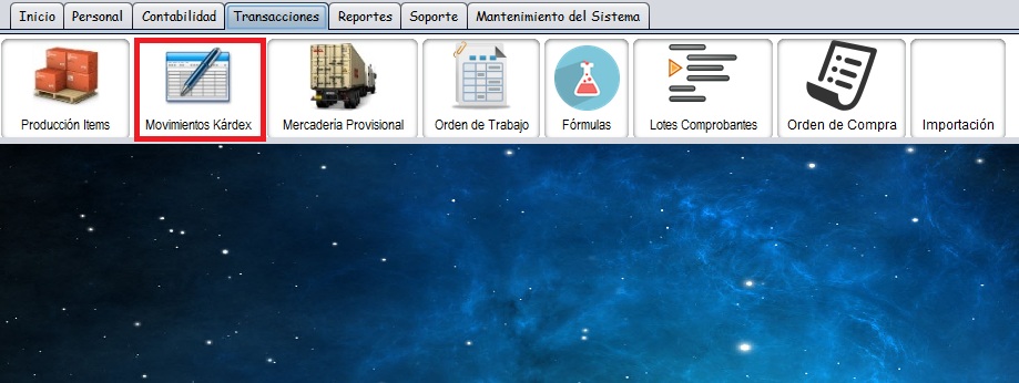 - Posteriormente, seleccione la opción "Movimientos Kardex"