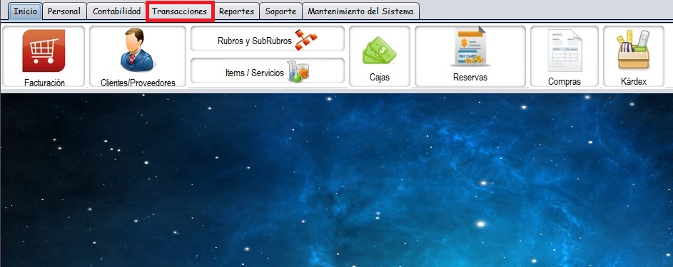 - El usuario deberá dirigirse al menú principal y seleccionar -> "Transacciones"