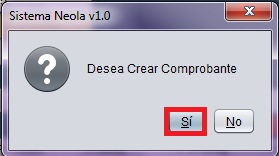 - Se mostrar谩 una ventana con el mensaje "Desea crear comprobante", presione el bot贸n "Si"