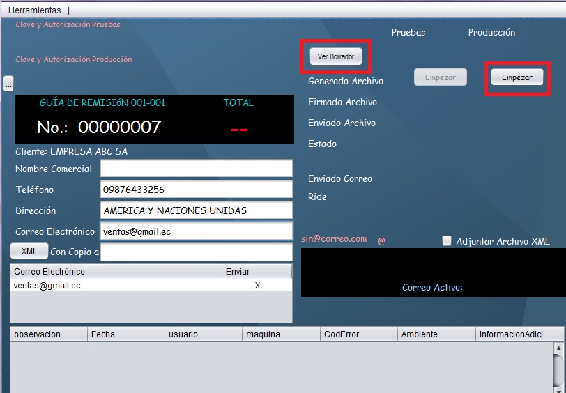 - Se abrir谩 la siguiente pantalla, puede revisar el borrador de la guia de remisi贸n, y clic en empezar para autorizarla聽