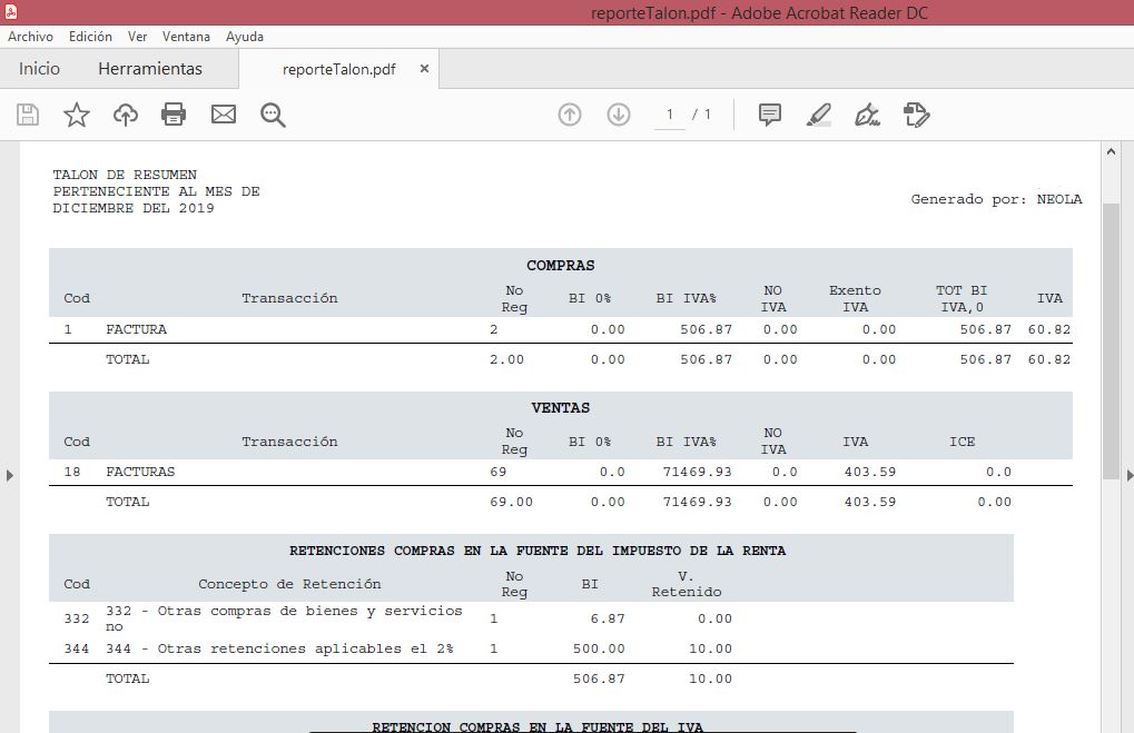Generar PDF talón de resumen