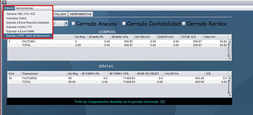 - De clic en “Edición” y seleccione la opción “Exportar a PDF talón de Resumen”