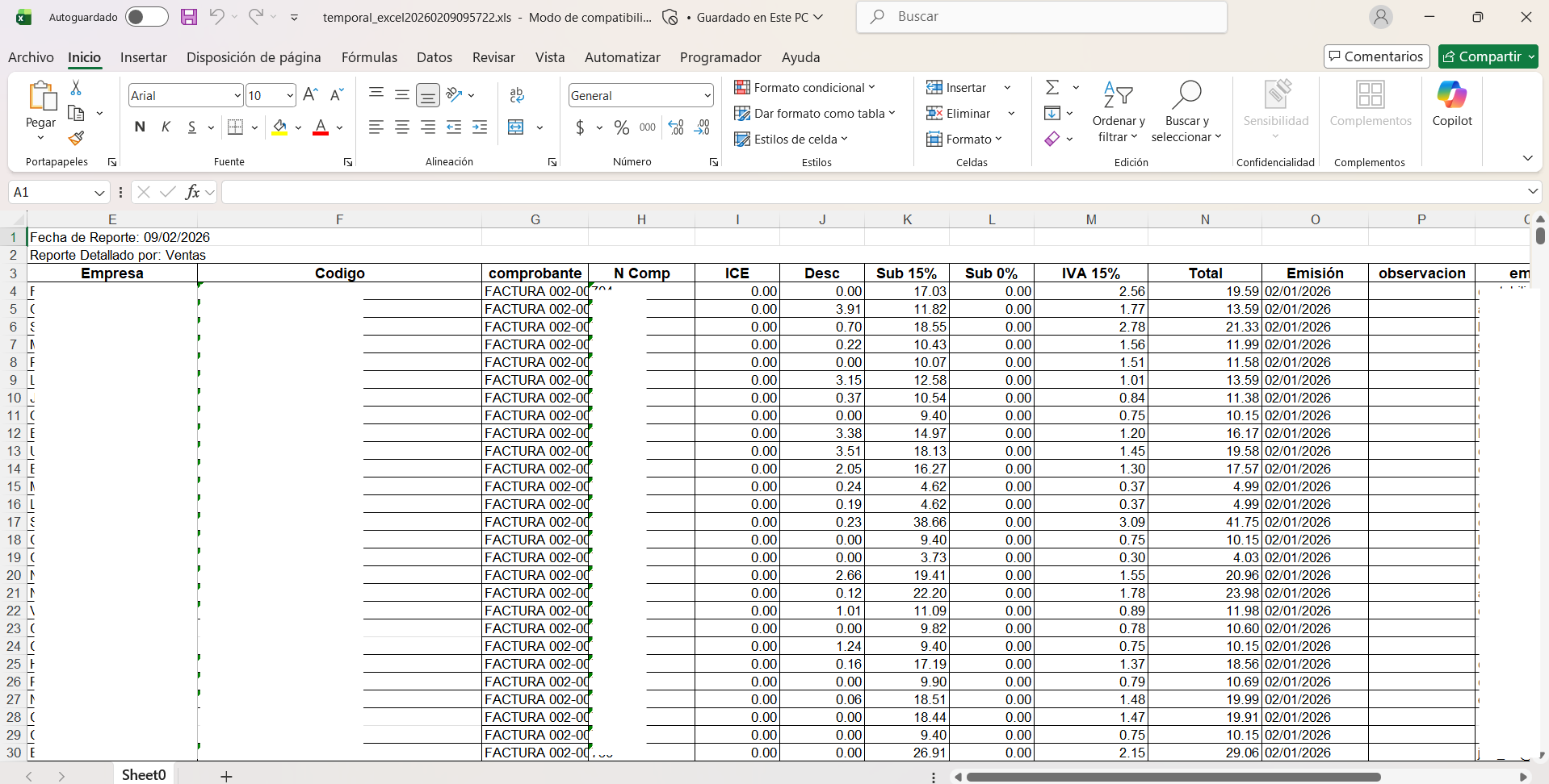 📊 Se descargará el Reporte detallado de ventas con número de autorización en formato Excel