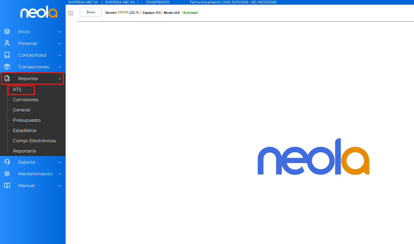 📂 Dirígete al menú Reportes y selecciona la opción ATS