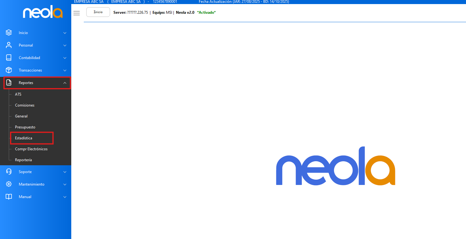 - Dar clic en el módulo "Estadística"