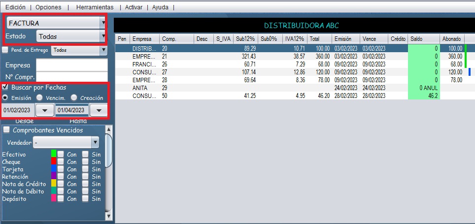 - En el módulo de cartera, filtre los campos necesarios para obtener el reporte de los clientes
